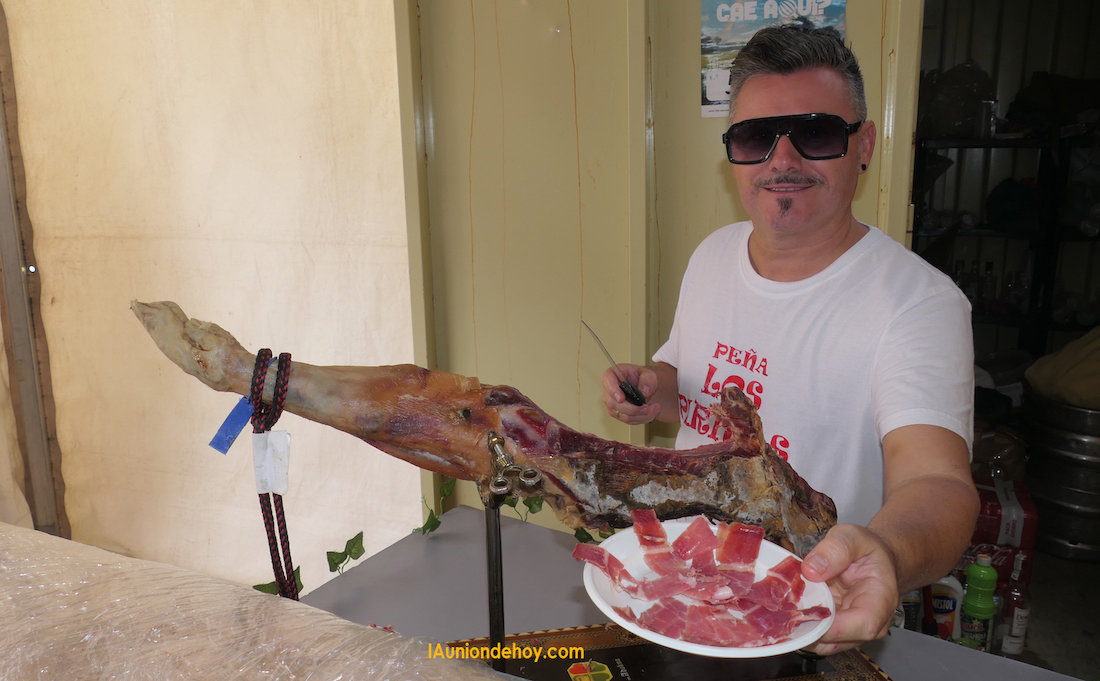Un buen cortador de jamón en la carpa de la peña 'Los Piritas'