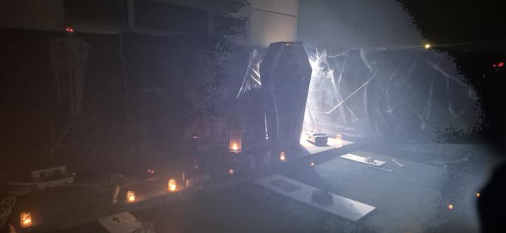 El siguiente foco de atención (y atracción) ha sido un pasadizo cuya temática ha girado en torno a ‘La maldición del huerto del general’, que tiene una base de historia y otra amplia de terror para encuadrarla en ‘Halloween’.
