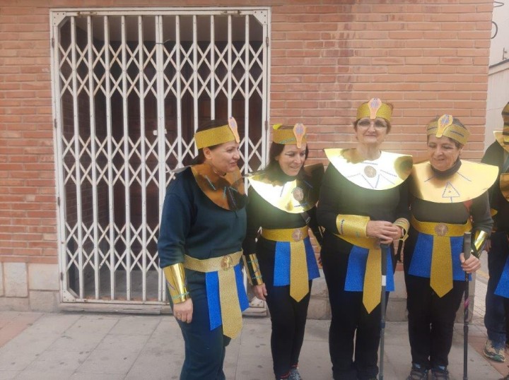 El grupo inició su marcha en la Cafetería Mayor, donde gracias a la propietaria, usaron el local para vestirse. Después, recorrido por El Chorrillo y por calles de La Unión, para terminar en el colegio de Vedruna, donde los más pequeños han disfrutado viendo y preguntado de qué país venían.