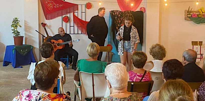 Pedro Salmerón, Paco Paredes e Irene Vicente ofrecieron una muy simpática velada en el patio del local de las asociaciones de vecinos y de amas de casa de El Garbanzal.