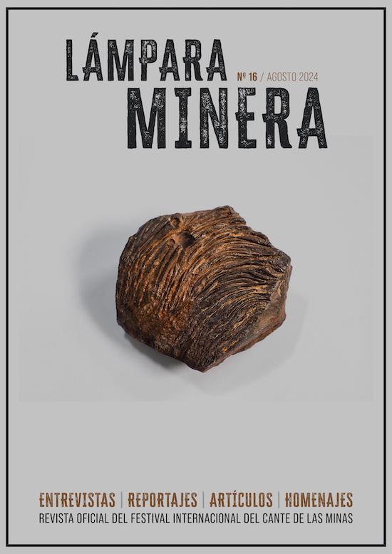 La portada de esta revista refleja, desde el minimalismo, la gacha con la que el artista Esteban Bernal ha creado el nuevo trofeo de la ‘Lámpara Minera’, una novedad que también queda reflejada en estas páginas y que el propio Bernal explicó durante la presentación. “He recogido esta gacha de uno de los escoriales del entorno de la ciudad, de las muchas fundiciones que había, para representar algo tan humilde, olvidado y despreciado, y darle su protagonismo en esta nueva versión de la Lámpara Minera”, indicó el artista.