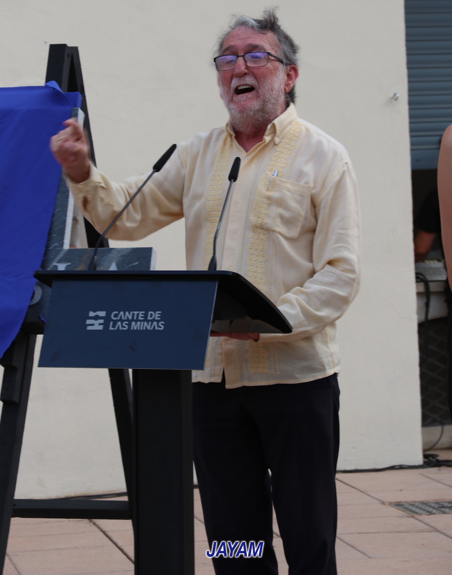 El Cante de las Minas rinde un merecido homenaje al artista que fue clave en la secuencia artística de los carteles oficiales del festival y se sentía muy identificado con La Unión desde finales del siglo pasado. La fundación le rinde tributo (falleció hace cuatro años por COVID) poniendo su nombre a una de las entradas de la 'Catedral del Cante'. Además, durante esta edición, el escultor uruguayo Juan de Andrés cede una obra de acero que se puede ver próxima a la entrada.