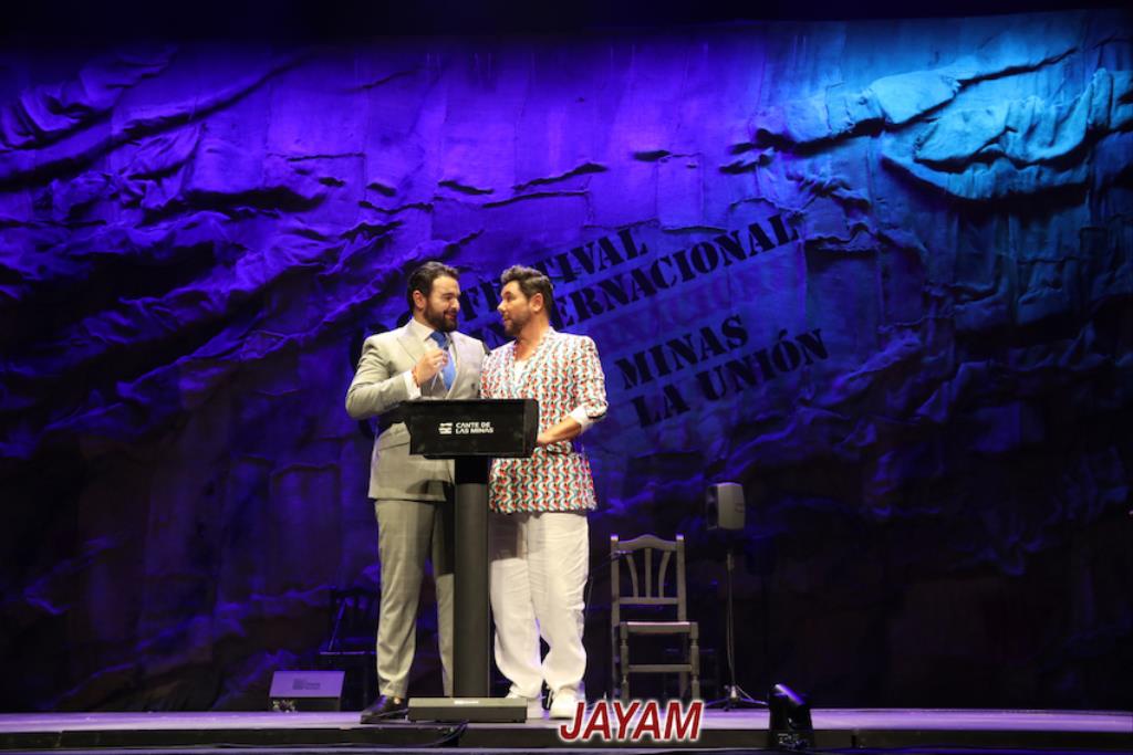Recordando su historia, llamó al escenario a Juan Ramón Caro, guitarrista flamenco que le acompañó cuando ganó la ‘Lámpara Minera’, para convertir el pregón en un encuentro de dos viejos amigos que hicieron volver a La Unión 31 años atrás con sus palabras. Pero también con música, porque interpretaron la minera que Caro ha recogido en su último disco para completar ese recuerdo ante la ovación del público.