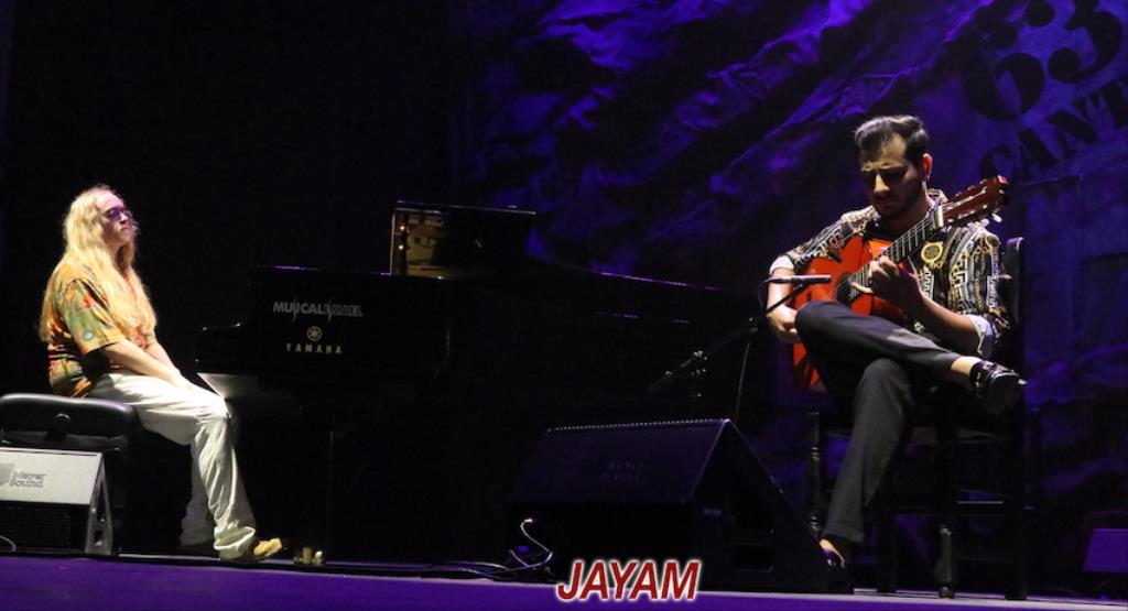 Los ganadores del concurso del Cante de las Minas empezaron a subirse al escenario de la ‘Catedral del Cante’ minutos después. Abrió el pianista cartagenero Raúl Pérez Fernández, que interpretó la taranta que le hizo ganador, junto a una soleá y jaleos extremeños, acompañado por ‘Dieguino’ a la percusión, Mamen Fernández al cante y Guillermo Ojados a las palmas. Más tarde se subió al escenario para acompañar a Juan Luis Campos ‘El Poti’, ‘Bordón Minero’ 2023, con una granaína. El guitarrista completó con zambra y taranta.