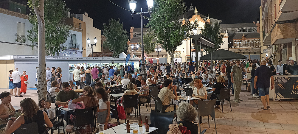 Por cierto, tras la actuación destaparán un azulejo en su honor en la 'Avenida del flamenco'. Anoche, cuando nos fijamos en los que hay, vemos con agrado que han experimentado un trabajo de restauración varios de ellos, habiendo sido sustituidas las losas o piezas dañadas. Otro detalle es comprobar lo bien que sienta a las cajas de la hostelería del entorno un Cante de las Minas.