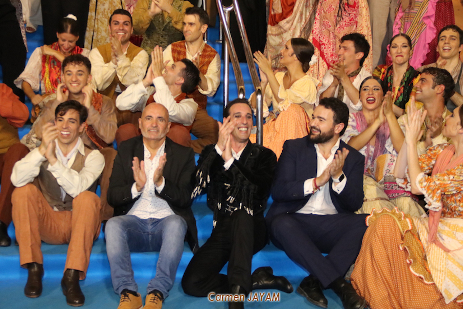 Fue tras la actuación de Olmo cuando una almoraima de Paco de Lucía sacó a todos los bailaores y bailaoras al escenario. Fue entonces cuando llamó por sorpresa al presidente de la Fundación Cante de las Minas, Joaquín Zapata, y al director del Festival, Julio García Cegarra, para hacer un fin de fiesta entre palmas, cargado de emoción. “El Ballet Nacional vuelve a la que siempre fue su casa”, afirmó Zapata.