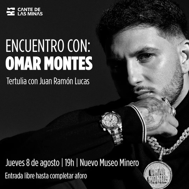 Tal y como se anunció hace unos días, el encuentro con Omar Montes, con motivo de la entrega del ‘Castillete de Oro’, pasará al jueves 8 de agosto. Debido a la alta demanda de esta cita, especialmente por parte del público joven, la Fundación Cante de las Minas ha decidido realizar un evento abierto, con entrada libre hasta completar aforo, en el Nuevo Museo Minero de La Unión a las 19:00 horas.