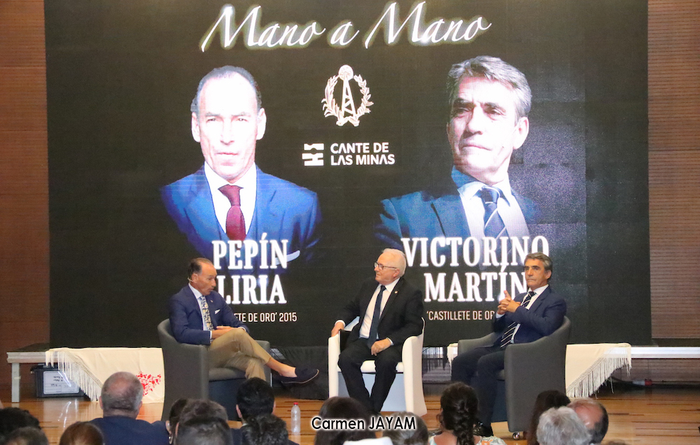 El ganadero Victorino Martín, presidente de la Fundación Toro de Lidia, recibió ayer el ‘Castillete de oro’ del Cante de las Minas. La tertulia taurina ‘Mano a mano’, que llenó el salón de actos de la Casa del Piñón, congregó a tres distinguidos con este reconocimiento, sumándose el periodista taurino Pepe Castillo Abreu y el torero Pepín Liria.