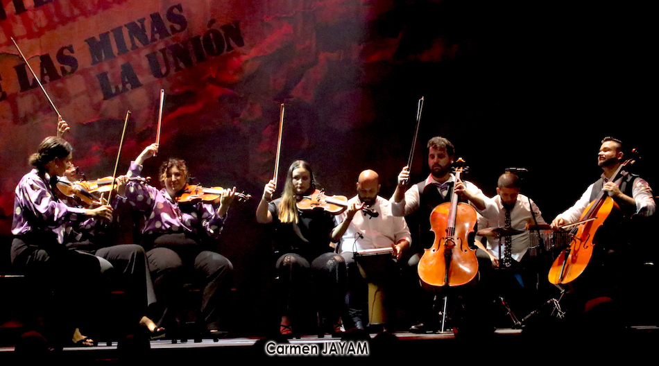 La noche comenzó con el sonido del violín a cargo de la sevillana María Graci con taranta, minera y tangos, acompañada de otros dos violines, Abigail Barrero y Celia Vicente, Gloria Espada a la viola, Jorge Gil y Fernando Jurado a los violonchelos y Manuel Badiola y Álvaro Gracia a la percusión.