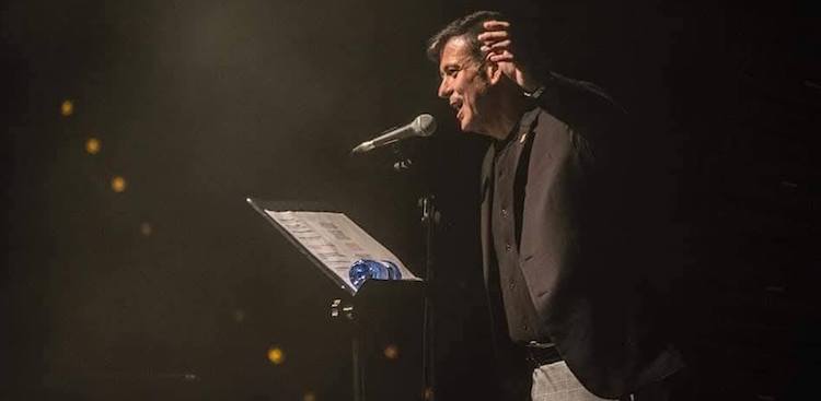 Paredes también colabora en el evento como letrista y autor de poesías. En la foto se le observa cuando presentó el festival 'Rivas flamenca' en Madrid.