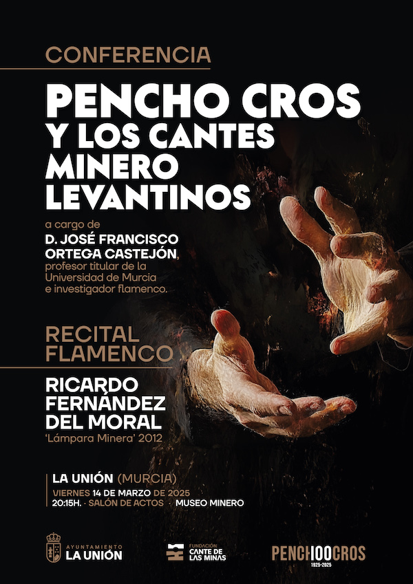 El legado del gran Pencho Cros y la riqueza de los cantes minero-levantinos serán protagonistas en una conferencia especial, que se celebrará en el Salón de Actos del Museo Minero de La Unión el próximo viernes 14 de marzo a las 20:15 horas.El acto contará con la ponencia de D. José Francisco Ortega Castejón, profesor titular de la Universidad de Murcia e investigador flamenco, quien profundizará en la figura de Pencho Cros, una de las voces más emblemáticas del flamenco minero y referente indiscutible del género.