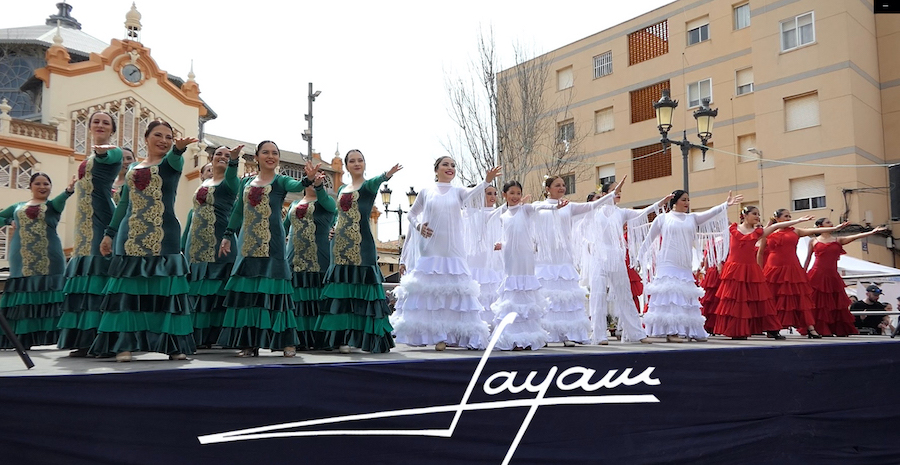 La quinta edición del 'Encuentro internacional de escuelas de flamenco y danza española' ha comenzado de forma brillante y cautiva con el espectáculo que han ofrecido cuadro academias en la plaza de Joaquín Costa.