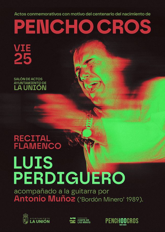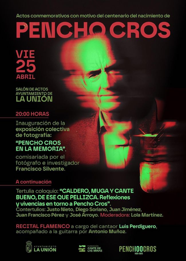 Los actos conmemorativos al centenario del gran cantaor flamenco unionense ofrecen este próximo día 25 la inauguración de un muestra fotográfica a la que sucederá la charla 'Caldero, muga y cante bueno, de ese que pellizca' en torno a la vivencias y reflexiones del tres veces ganador de la 'Lámpara Minera', poniendo el broche a la jornada la actuación flamenca de Luis Perdiguero con Antonio Muñoz a la guitarra. Entrada gratuita en el salón de actos del Ayuntamiento de La Unión, entidad organizadora junto a la Fundación del Cante de las Minas.