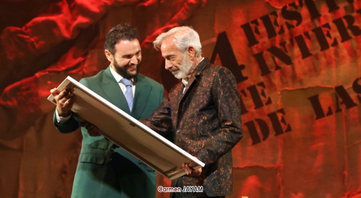 El actor leonés, tras expresar que tiene a La Unión "en un rinconcito importante en mi corazón", ofreció dos muestras de la obra con la que ha regresado al teatro después de tres décadas y en la que encarna al cantaor 'El Alcayata', llevando a cabo una puesta de escena novedosa de este capítulo en un festival del que proclamó que no nace "de las modas o el verano sino de trabajo, sudor y lágrimas".