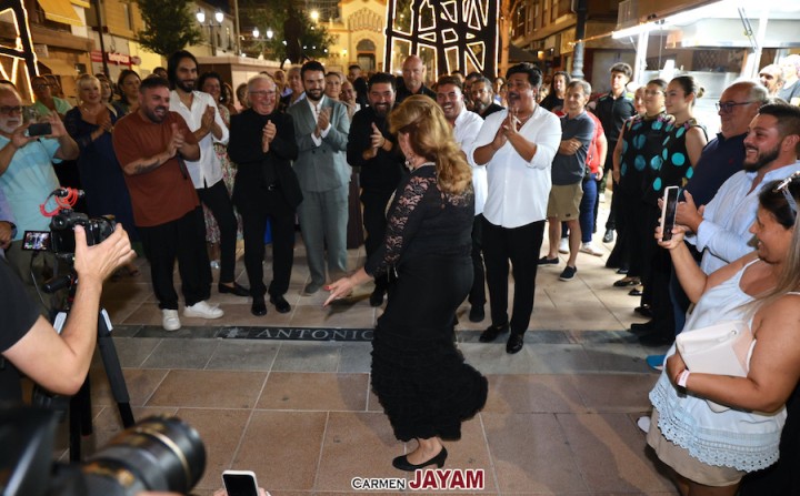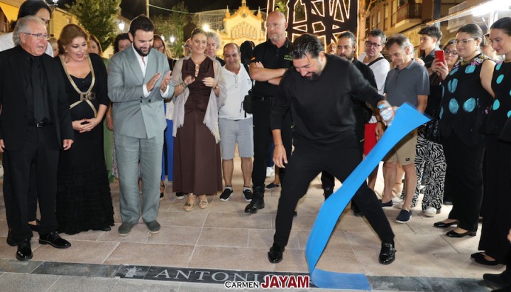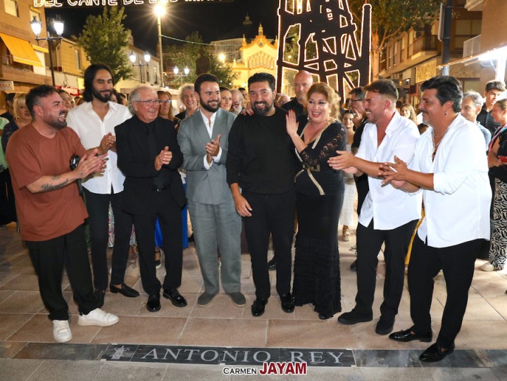 Para que su vinculación con el Cante de las Minas siga latente, el artista descubrió una placa con su nombre en la ‘Avenida del Flamenco’ al finalizar su concierto. Y no en un sitio cualquiera: al lado de la que recuerda al maestro Enrique Morente. Junto a los artistas que le acompañaron en el escenario, e improvisando baile, palmas y cante, inauguraron este espacio que hace que su nombre quede para siempre vinculado a esta tierra que desde hace más de dos décadas tiene un hueco en su corazón. Un momento en el que estuvo presente, además, el guitarrista Yerai Cortés, que horas antes recibía el ‘Castillete de Oro’ dentro de la Agenda Cultural del Cante de las Minas, regalando un posado juntos en esta nueva placa.