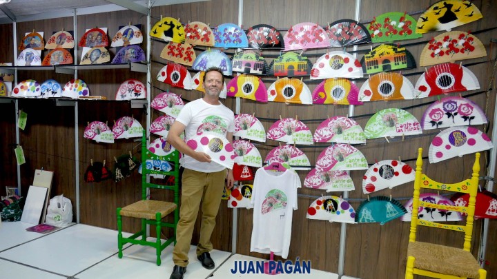 El unionense Juan Pagán ofrece su particular visión gráfica de las dos primeras jornadas de la 64 edición del Festival del Cante de las Minas. En la imagen adjunta, el pregonero, Imanol Arias, en el estand del joyero Manolo García en la ‘Avenida del flamenco’.