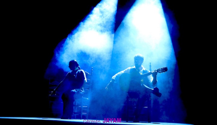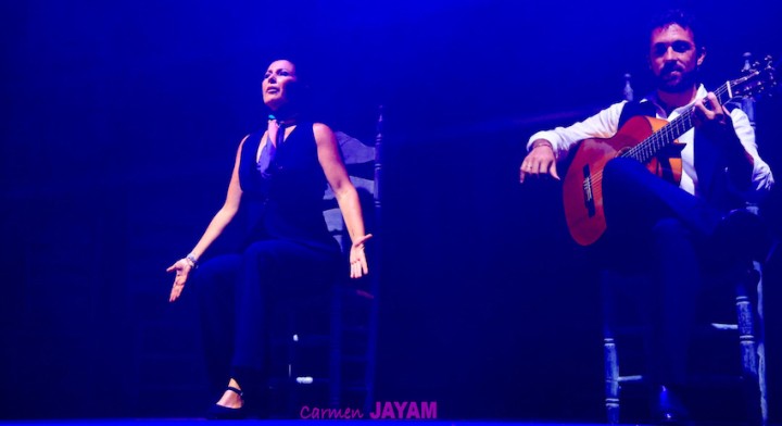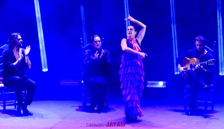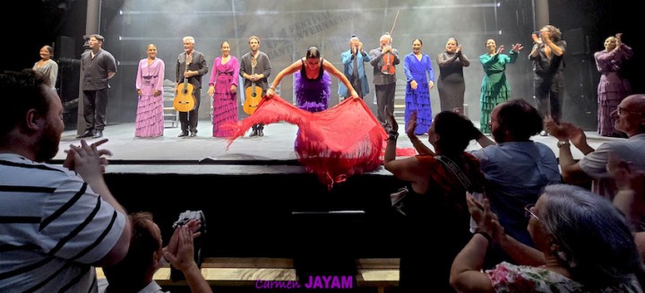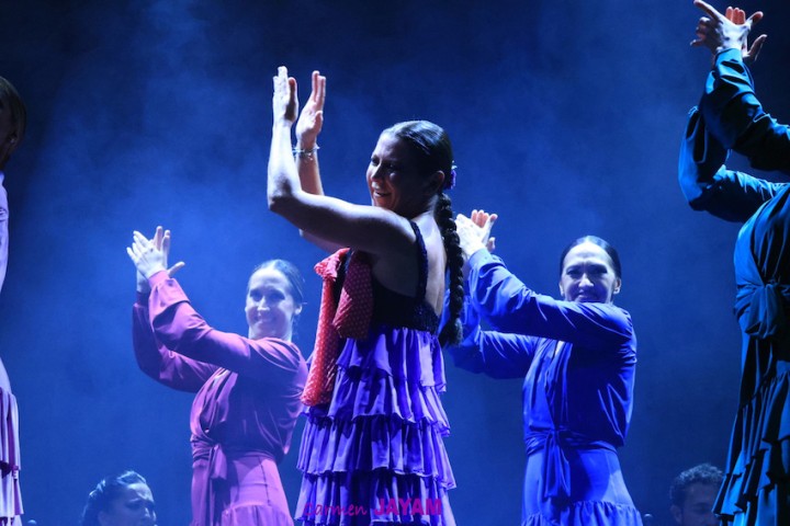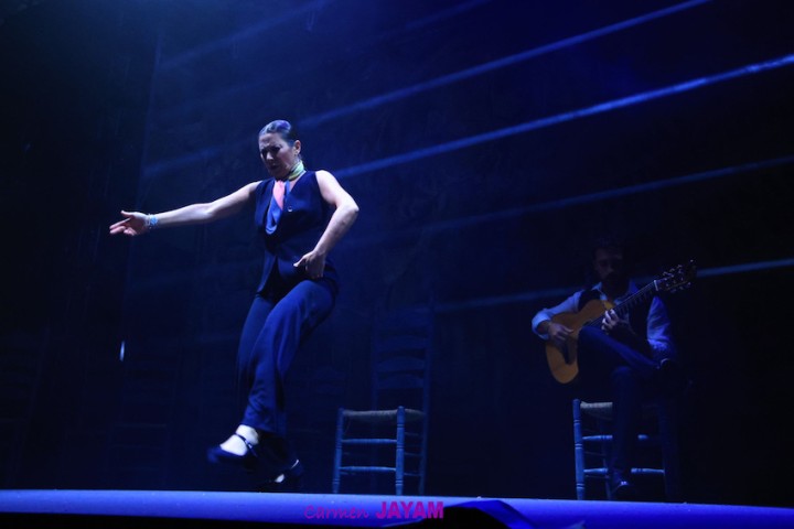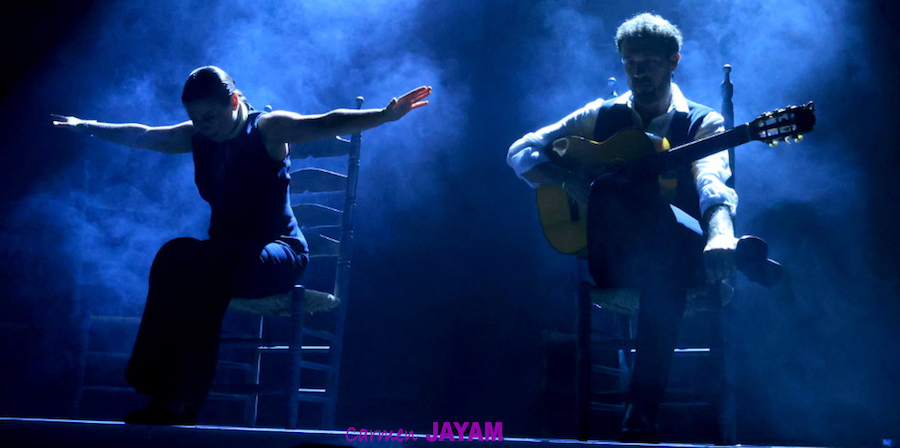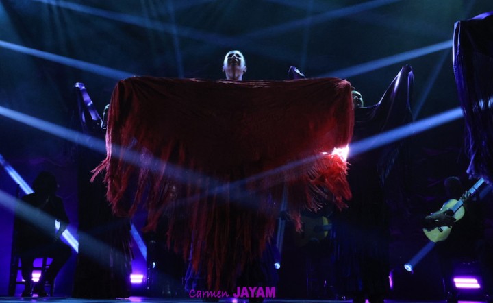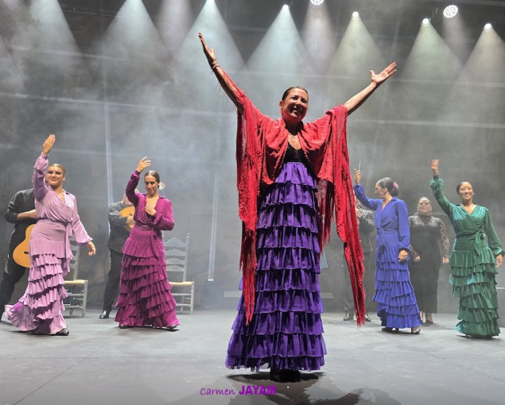 Por eso apareció en escena y se sentó en esa silla para comenzar su taconeo, ahora con fuerza, junto al director musical del espectáculo, Keko Baldomero. En casi penumbra, con la elegancia que la caracteriza, empezó a hacer los primeros guiños al cielo. No hubo que esperar mucho para que sonara una minera en este templo del flamenco, titulada ‘Voz’, porque la noche quería descifrar, a través de 15 piezas, el lenguaje del flamenco con “canciones de Paco y para Paco”. Con ‘Ritmo’ su cuerpo de baile salía a escena y mostraban, a golpe de bastón, una perfecta sincronización que daría paso a un segundo acto, “que representa el amor que le tenía al mar y a su tierra”.
