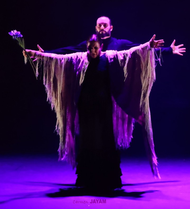 ‘Mar’ fue una serie de elementos que trajeron los tientos y las alegrías, con un vestido blanco que parecía estar mecido por las olas. Y del blanco pasó al negro, al luto más profundo, introducido por el sonido de unas campanas y un baile junto a Daniel Saltares donde reinó la sobriedad. ‘Con lo mucho que yo lo quería / se fue de mi vera / se fue pa’ siempre” cantaba la voz de May Fernández, que compartió la noche junto a una ya conocida por este templo flamenco: la de ‘El Mati’, ganador de la ‘Lámpara Minera’ en 2019.