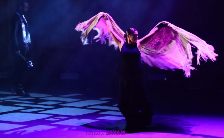 ‘Madera’ tenía como título este primer acto del espectáculo ‘Vuela’, con el que la artista gaditana rinde homenaje a su paisano desde el cariño y el amor que se profesaban, y celebrando a la vez el 25 aniversario de su compañía, que prácticamente se estrenó en el Antiguo Mercado Público de La Unión. Este primer bloque “representa la tradición”, según la propia Sara.