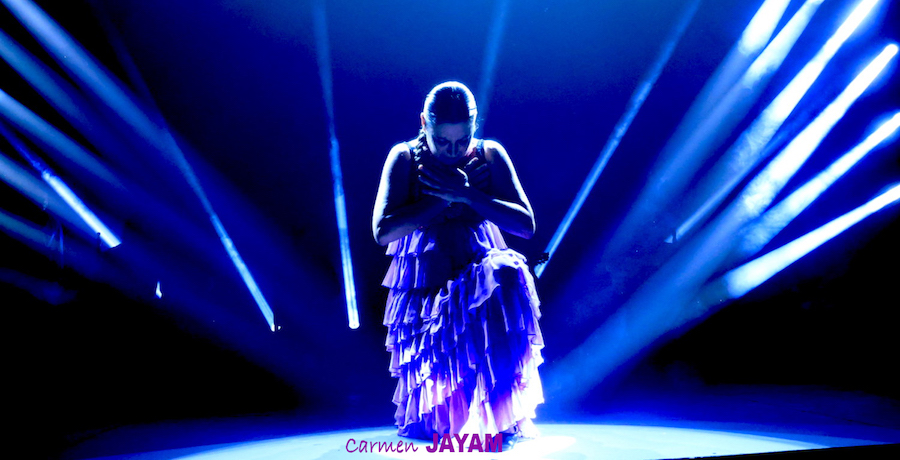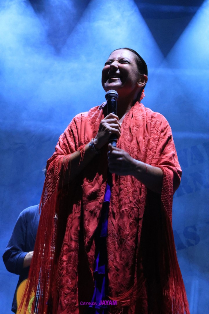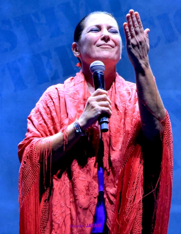 La presencia de Sara Baras en el escenario hace que no se necesite nada más para transmitir la verdad de su arte. Tiene esa capacidad de simular un corazón que late con el pulso de sus pies, sobrecogiendo a quien la ve en su propio vuelo encima del escenario. A pesar de que ‘Vuela’ lleva más de 127 funciones y que la artista ha estado presente en diferentes países, minutos antes de volver a ese escenario afirmaba estar aún más nerviosa que el primer día. “Estoy súper contenta de estar aquí, pero nerviosa por la responsabilidad de volver a un festival tan importante y que quiero tanto, y que, encima, me ha mostrado siempre su cariño y me ha visto crecer”, afirmaba, recordando que fue en el 1997 cuando vino por primera vez, así como su nombre en la ‘Avenida del Flamenco’ o su ‘Castillete de Oro’ en 2012. Pero fue pisar ese conocido escenario y Sara volvió a sentirse como en casa.