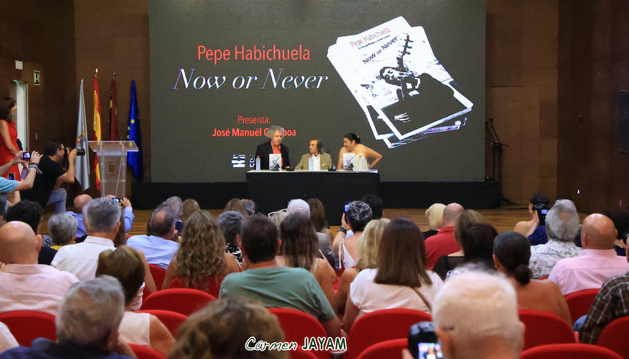 El encuentro con José Antonio Carmona, su nombre real, esta tarde durante la Agenda Cultural ha sido una conexión con una persona humilde, cercana y carismática, de esas que solo pueden producir admiración. Su historia la ha compartido a través de la presentación del libro ‘Now or never’, la biografía en la que José Manuel Gamboa no solo ha plasmado toda su vida, sino que incluye las voces de su hijo Josemi Carmona y de su mujer, Amparo Bengala, quien ha estado acompañándole en este importante momento para el guitarrista.