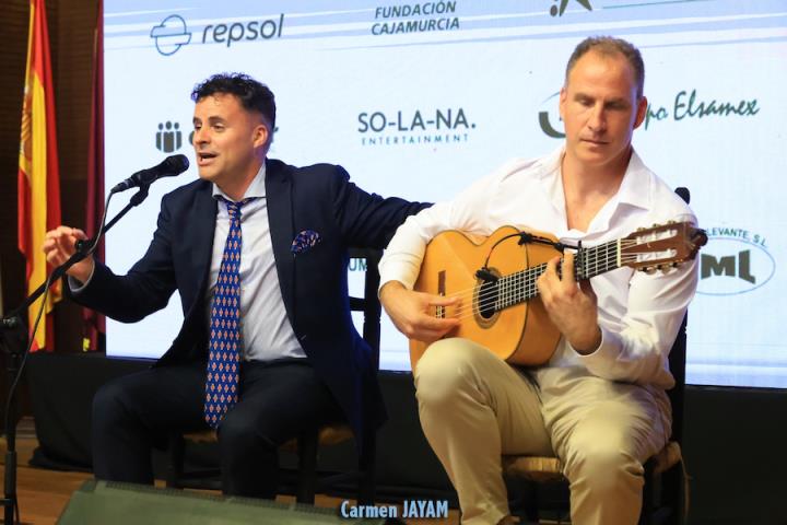 Su pasión por el cante y la música no desaparece en el libro, ya que en esta obra ha llevado el flamenco a la literatura. “El cante flamenco es literatura, pero también hay formas de narrar en el baile flamenco y en la guitarra”, cuenta. ‘Los colores de la nieve’ es el resultado de años de lector empedernido, pero también de estudiar el cante, lo que ha hecho que haya páginas que jueguen a leerse por seguiriyas. Así lo ha demostrado compartiendo un fragmento durante la presentación y entonando el ‘Ojos verdes’ en un ficticio paseo por el Mirador de San Nicolás, y acabando la entrega de galardones con un auténtico recital de cante junto a Juan Martínez ‘El Mergo’ que permitió disfrutar, una vez más, de su voz en La Unión.