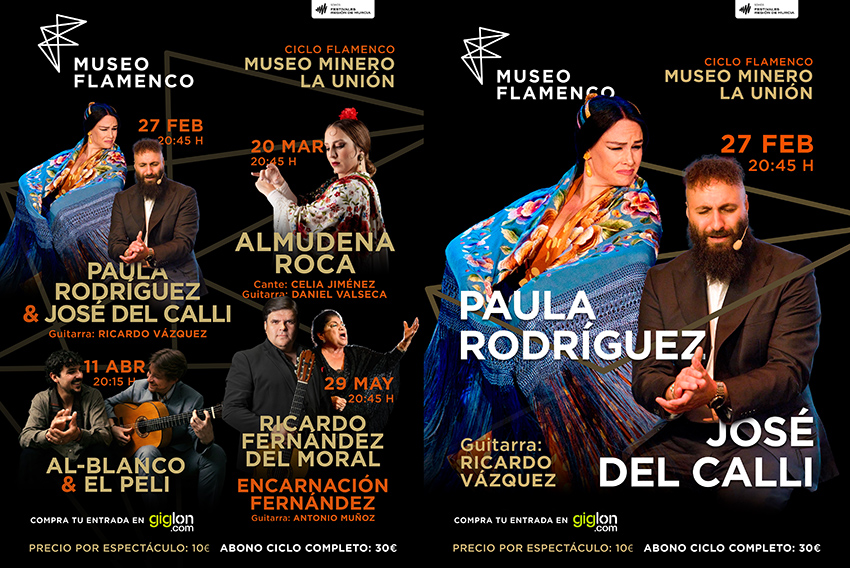 Con Ricardo Vázquez a la guitarra, la bailaora y el cantaor inician en el escenario del Museo Minero la nueva propuesta de La Unión con el arte jondo, que se prolongará con más actuaciones hasta el 29 de mayo. Las entradas cuestan 10 euros y hay un abono para las cuatro actuaciones al precio de 30 euros.