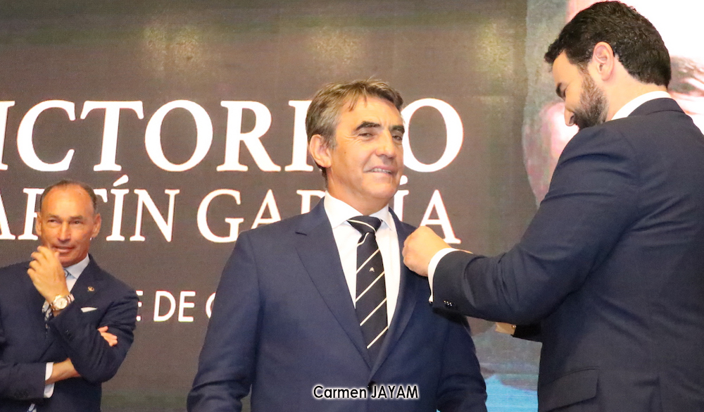 El ganadero Victorino Martín, presidente de la Fundación Toro de Lidia, recibió ayer el ‘Castillete de oro’ del Cante de las Minas. La tertulia taurina ‘Mano a mano’, que llenó el salón de actos de la Casa del Piñón, congregó a tres distinguidos con este reconocimiento, sumándose el periodista taurino Pepe Castillo Abreu y el torero Pepín Liria.