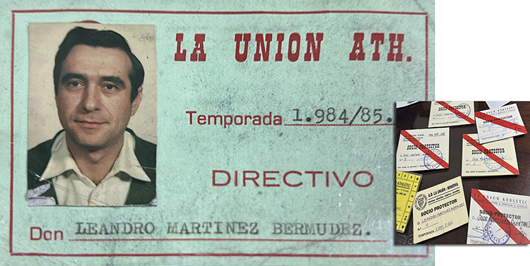 Leandro Martínez Bermúdez ha encontrado el carné que le acreditaba como directivo de la extinta La Unión Athletic en la hace algo más de cuarenta años y los que se le entregaron a su hijo y a él como socios protectores del fútbol base de dicho club y del AD La Unión-Minerva entre los años 1980 y 2022.