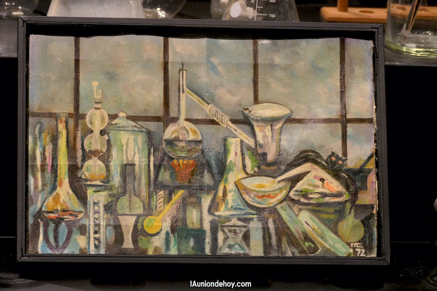 La unionense María Cegarra Salcedo fue prestigioso científica y reconocida poeta, pero también probó en el mundo del arte pictórico cuando pintó un lienzo en el que pintó su material de trabajo en el laboratorio. Esta pintura se conserva en el Museo Minero tras donación de la familia.