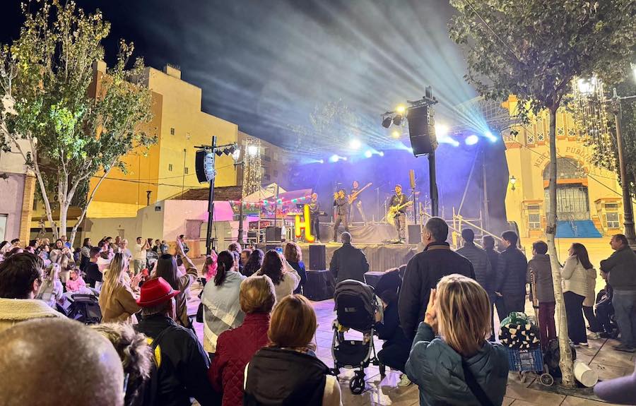 Los actos de inauguración del programa navideño de la ciudad de La Unión culminaron con la actuación de 'Los Happys', una de las bandas mas populares de la Región de Murcia, en el escenario de la plaza de Joaquín Costa.
