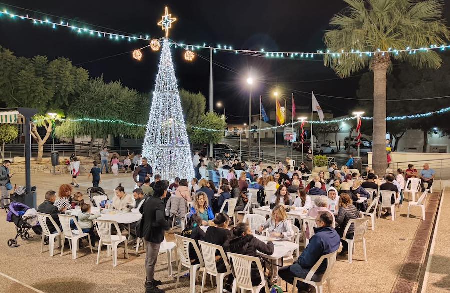 El árbol navideño ubicado en la plaza del centro social fue iluminado en una tarde de ayer que también contó con chocolatada con bollos y la actuación de 'Mujeres con alma'.