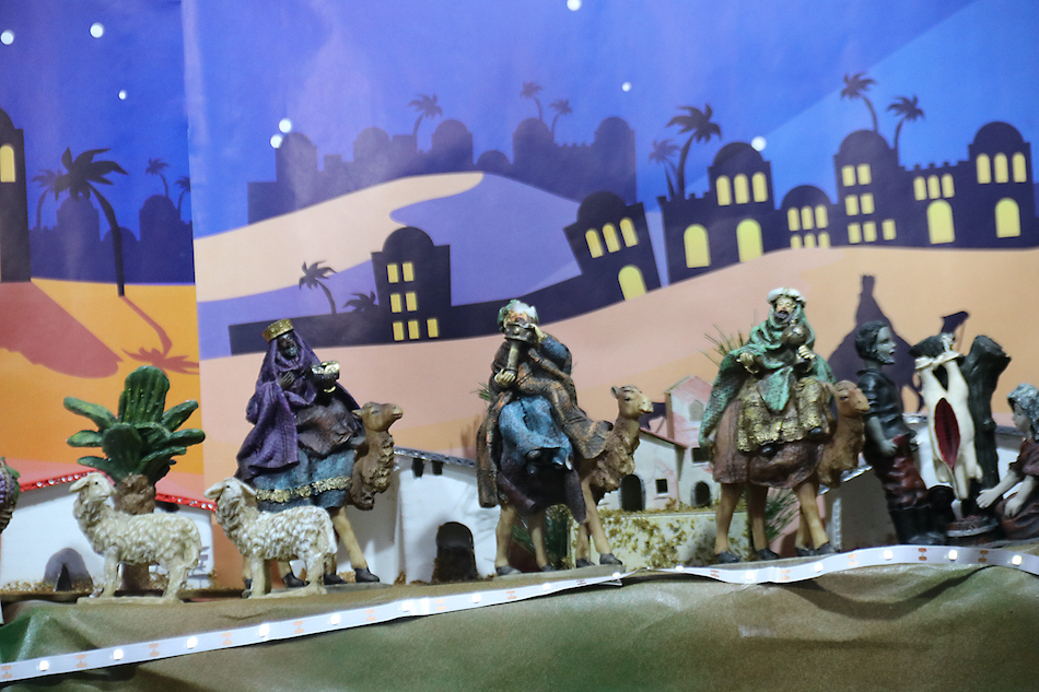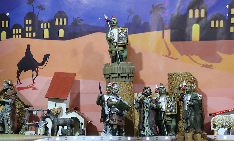 El escaparate del establecimiento de Fotografía Jayam sigue con su tradicional adaptación a cada época del año y ahora no podía falta el Belén con el nacimiento, castillo de Herodes, llegada de los Magos de Oriente, etc.