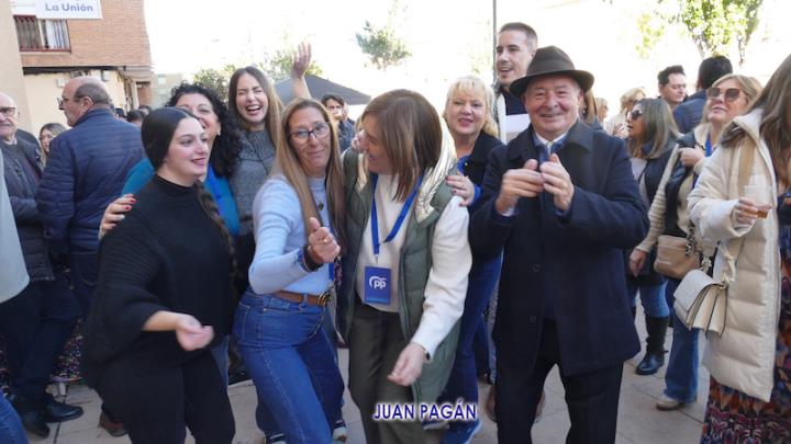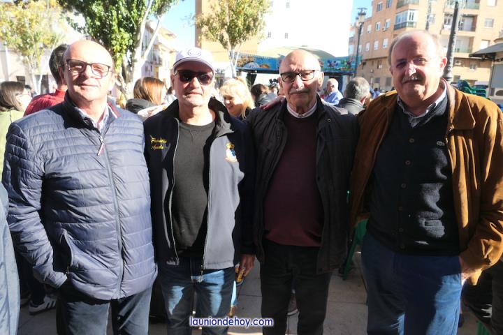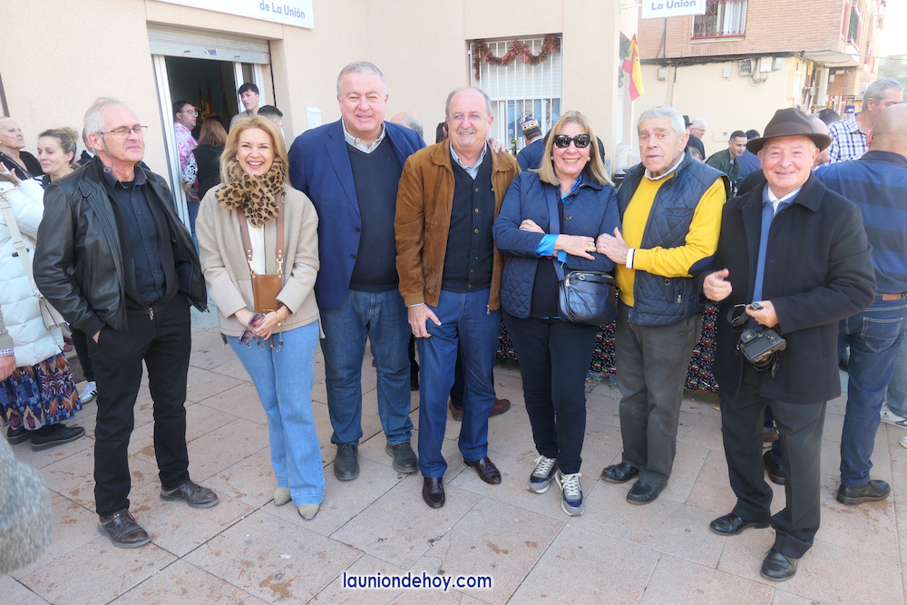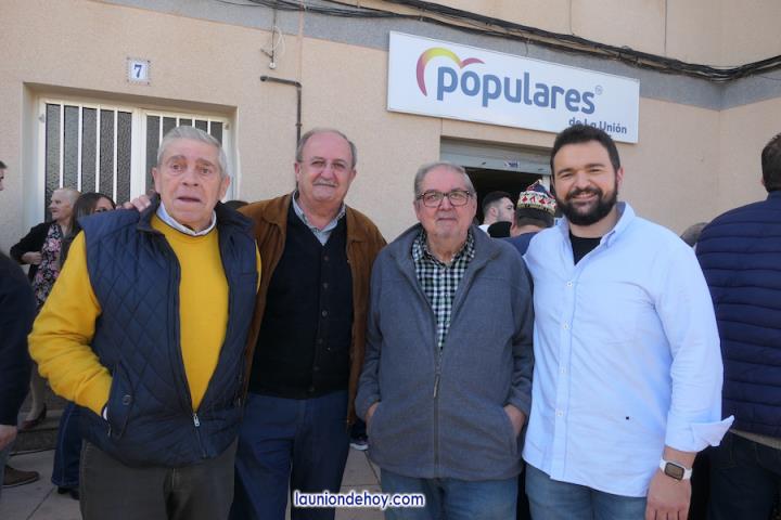 La familia del Partido Popular de La Unión celebró el tradicional almuerzo navideño frente a su sede de la plaza de Joaquín Costa con presencia de más de cuatrocientas personas y epílogo con la música y el baile como protagonista. En la foto se observa a Francisco Bernabé (senador unionense), Visitación Martínez (presidenta de la Asamblea Regional), Joaquín Zapata (alcalde del municipio) y Julio García (director del Cante de las Minas).