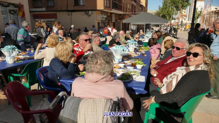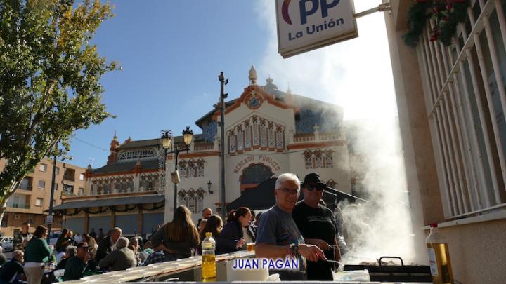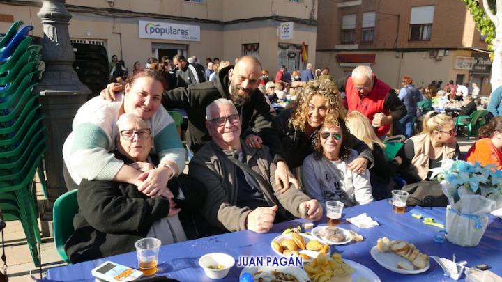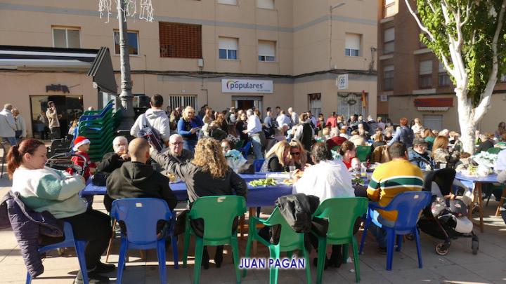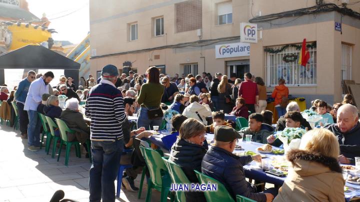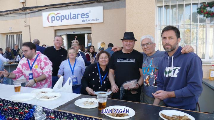 El PP de La Unión celebró con sus afiliados, a los que se sumaron algunos simpatizantes y amigos, la bienvenida navideña con un gran encuentro que tuvo como primer capítulo el almuerzo con variedad de productos, incluidos los que salían de la plancha y un arroz, para después culminar la convivencia bailando al ritmo del dúo 'Serendipity', que actuaba por la tarde en el escenario de la plaza de Joaquín Costa.