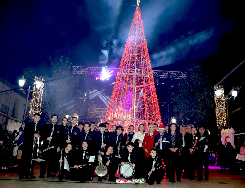 La Agrupación Musical La Unión y el grupo 'La banda de ases' fueron los encargados de acompañar el encendido navideño y de poner colofón en la plaza de Joaquín Costa a los actos de la jornada programados por el ayuntamiento, respectivamente.