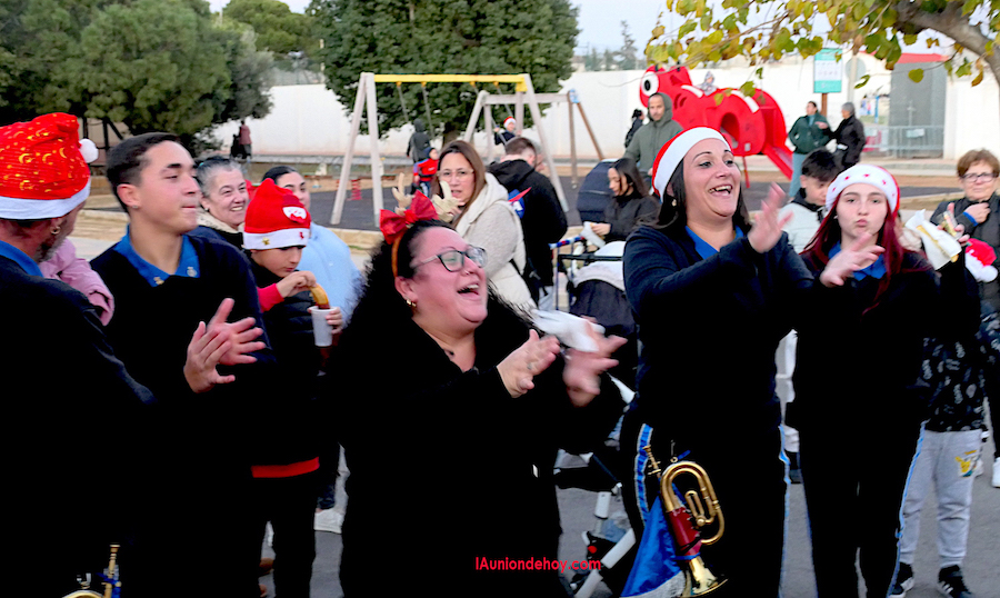 La banda de cornetas y tambores de Nuestra Señora de los Dolores, acompañada por Papá Noel, recorrió El Garbanzal en una tarde enriquecida por la chocolatada ofrecida por la asociación de vecinos.
