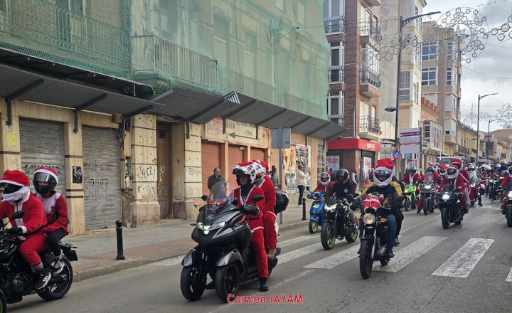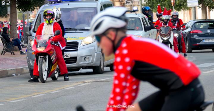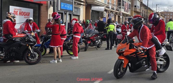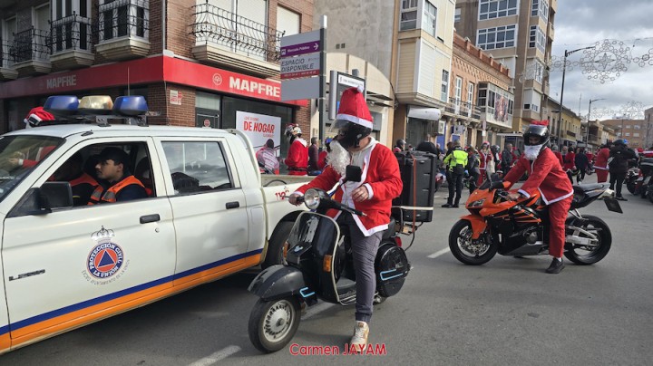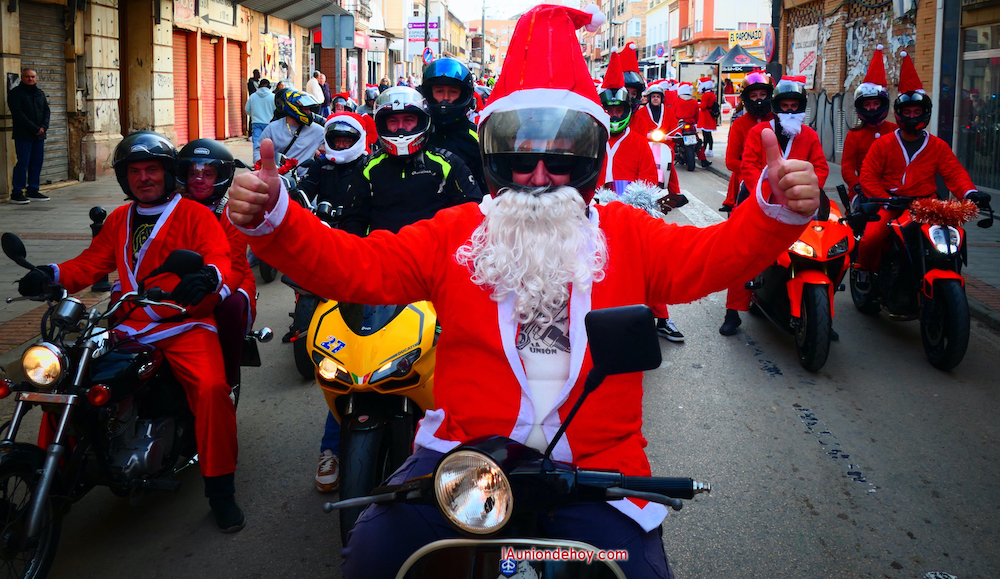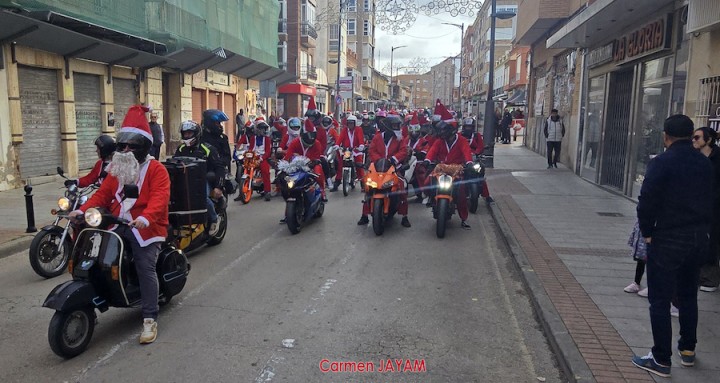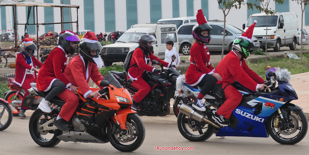 Muchos iban ataviados con el vestuario blanquirrojo y algunos con las emblemáticas barbas blancas y gorros, con guinaldas en las motos, además de un par con cajas de regalos.