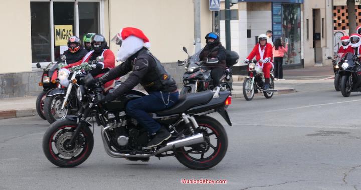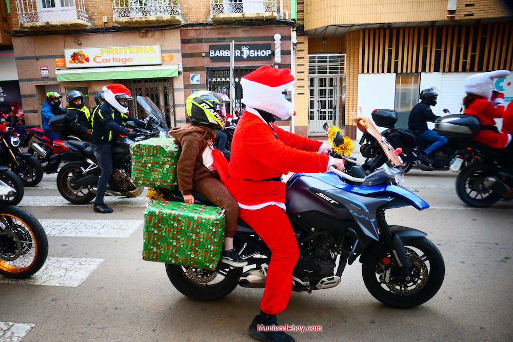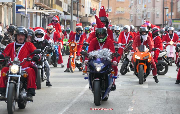 Papá Noel es un popular personaje navideño también conocido por Santa Claus, Santa y San Nicolás, pues está inspirado en lo que transmitió el folclore europeo sobre San Nicolás de Bari. La escena habitual es verlo desplazarse en trineo, pero no siempre es así, pues también le va ir sobre ruedas, como reflejó ayer la 'Papanoelada' que el Motoclub La Unión organizó por sexto año en la capital de la Sierra Minera, con la colaboración del Ayuntamiento de La Unión, siendo el vehículo de Policía Local el que abría paso al desfile, situándose Protección Civil en cola.