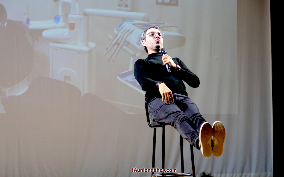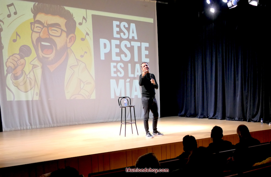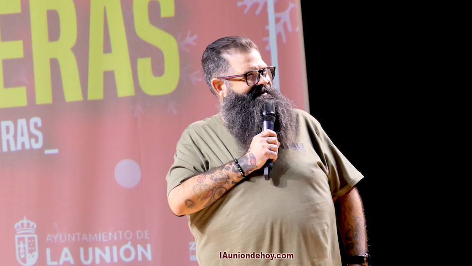 Los monólogos de los murcianos David Domínguez y de Kalderas, centrados en sus peripecias dentro de la normalidad diaria, llenaron de risas y carcajadas el salón de actos del Museo Minero.