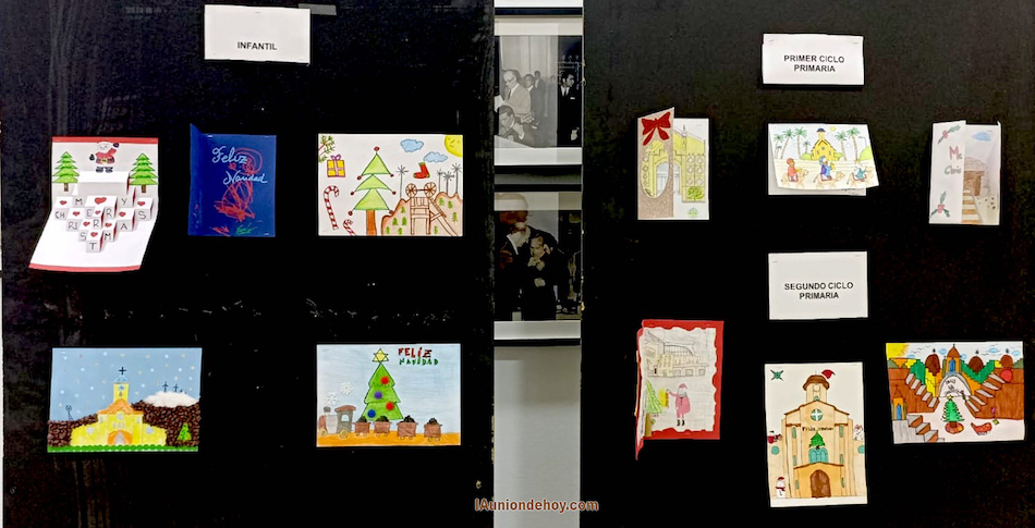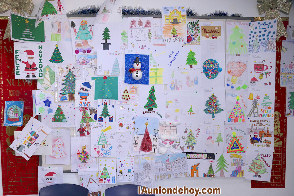 Los epicentros navideños de la actividad social de Roche, Portmán y de la urbana La Unión lucen las numerosas postales y dibujos elaborados por escolares del municipio.