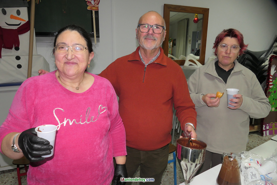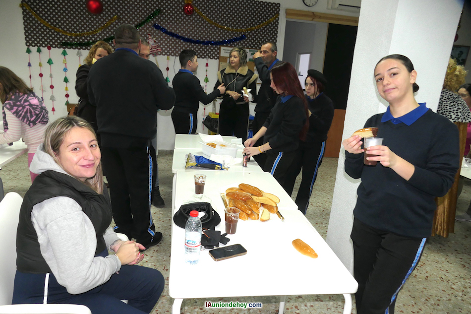 Fue una idea de la banda de música a la que enseguida 'metieron el hombro' los demás colectivos, siendo Faustina, de la asociación vecinal, quien elaboró el sabroso chocolate que se ha repartido de forma gratuita en la convivencia final dentro del local social, mientras que el Ayuntamiento de La Unión ha aportado los bollos.