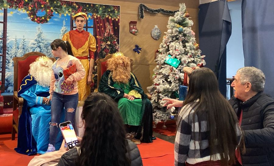 Los Reyes Magos, representados por Melchor y Gaspar, fueron despedidos de su periplo por tierras unionenses de este año con un encuentro con los chavales del pueblo rochero organizado por la asociación de vecinos en la tarde de ayer en el salón de actos del centro social.