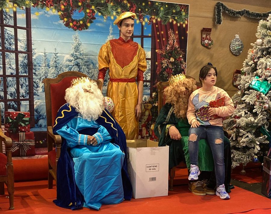 La pedánea, Maribel Laínez, posa con los Magos de Oriente y un paje