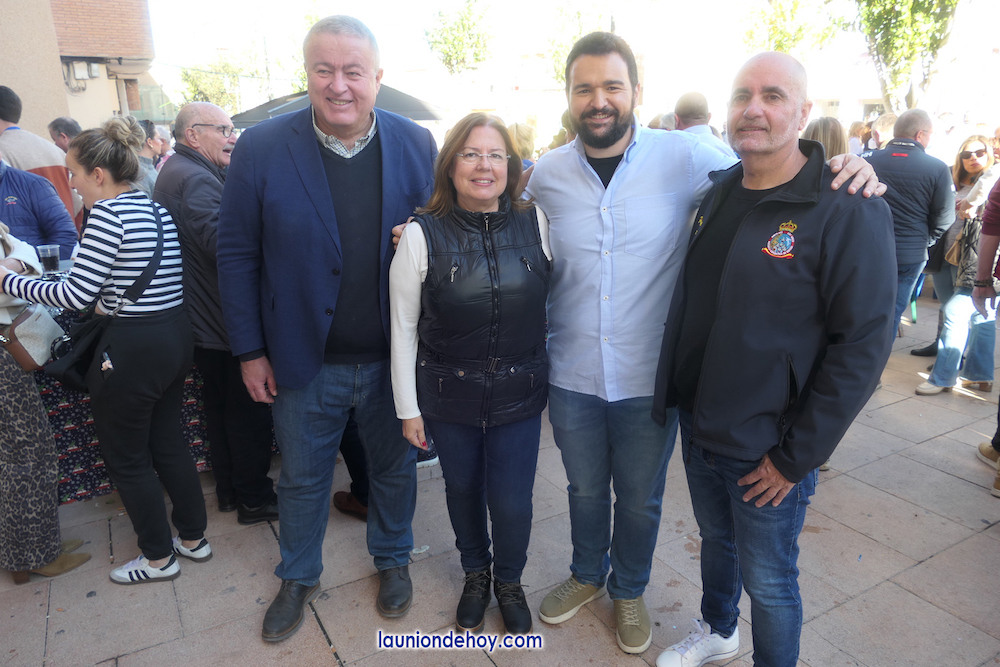 La familia del Partido Popular de La Unión celebró el tradicional almuerzo navideño frente a su sede de la plaza de Joaquín Costa con presencia de más de cuatrocientas personas y epílogo con la música y el baile como protagonista. En la foto se observa a Francisco Bernabé (senador unionense), Visitación Martínez (presidenta de la Asamblea Regional), Joaquín Zapata (alcalde del municipio) y Julio García (director del Cante de las Minas).