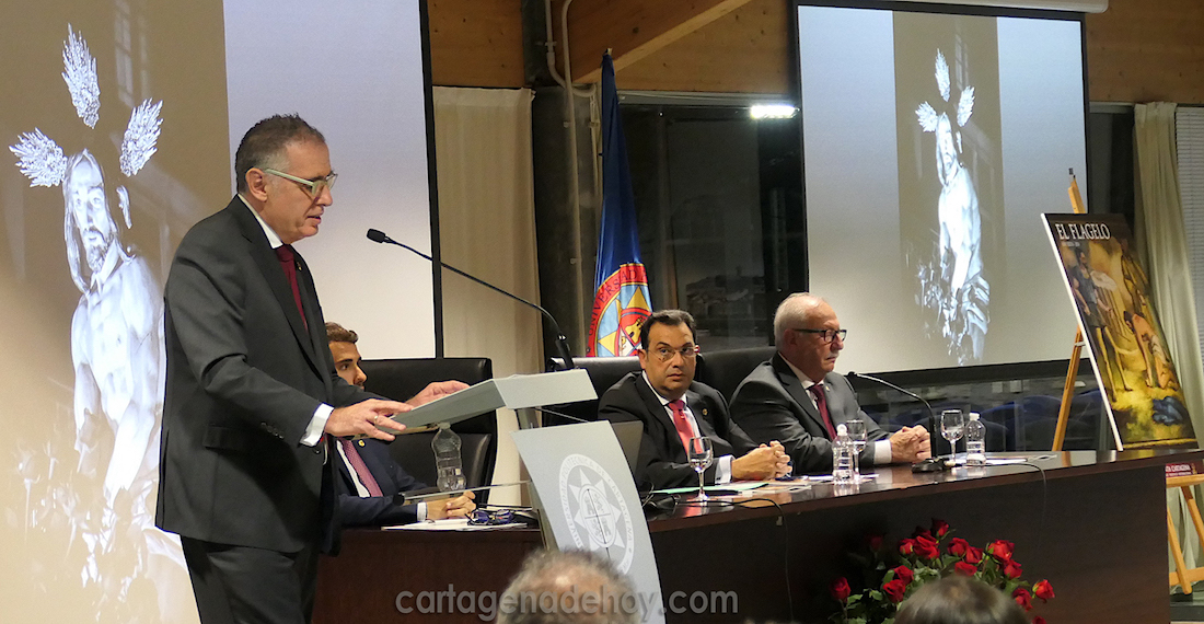 Gonzalo Wandosell Fernández de Bobadilla, cronista oficial de La Union y quien ha sido pregonero de la Semana Santa Minera en 2022 y de la Semana Santa de Portmán en 2023, presentó en la sede de la UPCT la revista 'El Flagelo', de la agrupación california del Cristo de la Flagelación, que con 33 números es la más longeva del mundo procesionista de Cartagena.