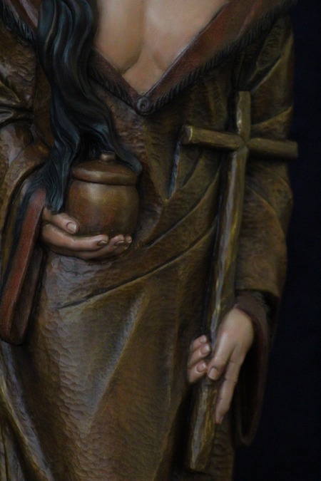 El imaginero unionense ha elaborado una escultura de talla completa en madera policromada que representa a María Magdalena y que tiene como destino la localidad alicantina de Callosa de Segura. La imagen dela santa tiene 93 centímetros de altura y 27 de diámetro en la base.
