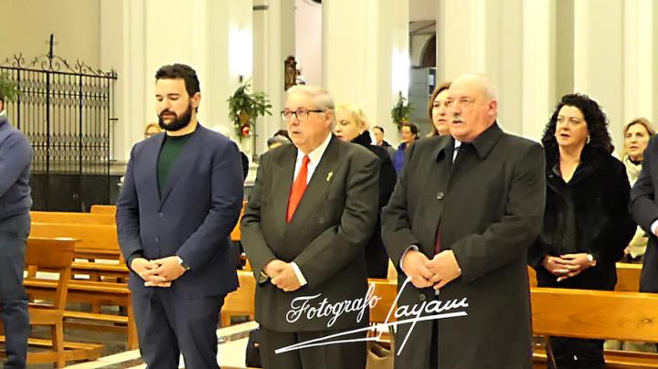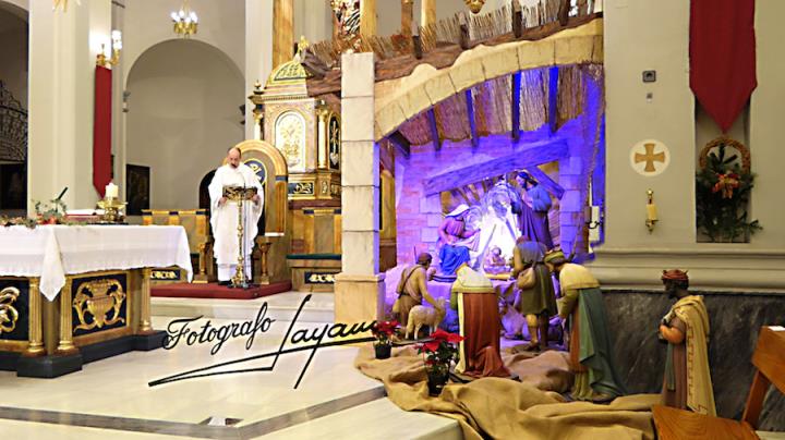 La misa fue oficiada por el párroco, Ginés Luis Vicente, quien, entre otros comentarios, en su homilia explicó las diferencias entre felicitar la Pascua, la Navidad o las fiestas. La celebración del oficio fue enriquecido por las voces del grupo coral 'Mujeres con alma' interpretando villancicos.
