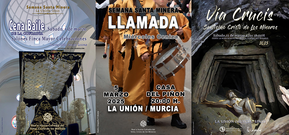 La actividad procesionista previa a los días de la Semana Santa comienza este sábado con la cena de la Cofradía del Cristo de los Mineros, continuando el 5 de marzo con 'La Llamada' y el día 15 con el Vía Crucis desde la mina Agrupa Vicenta, cuyos eventos ya se dan a conocer a través de los carteles elaborados por el fotógrafo unionense Francisco Silvente.