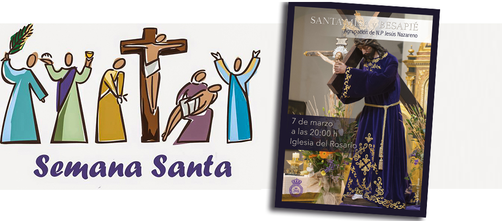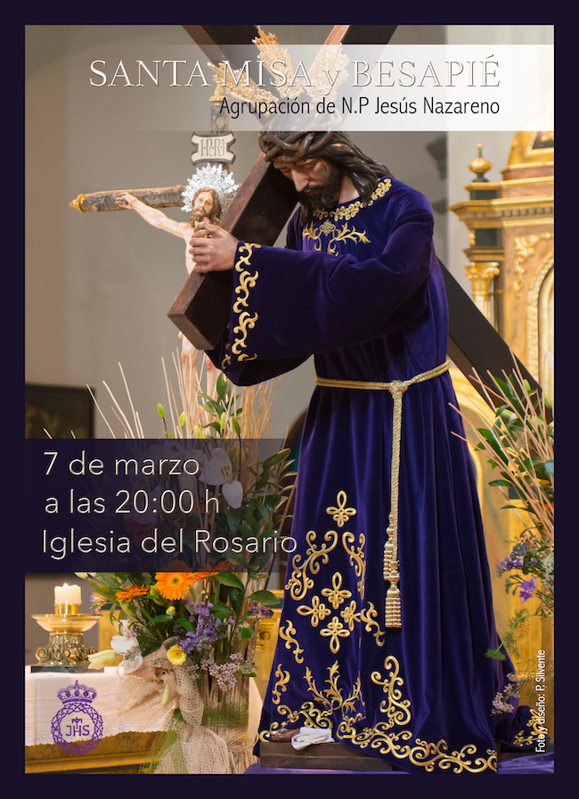 - Santa Misa de la Agrupación de Nuestro Padre Jesús Nazareno y Besapié. Viernes,9 de marzo a las 20:00h.